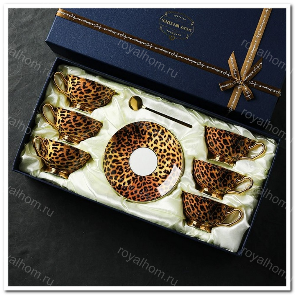 Почувствуйте роскошь с первого взгляда — чайный набор на 6 персон с леопардовым принтом и сияющими золотыми ручками выполнен в стиле легендарного дома Versace. Этот набор сочетает в себе смелый дизайн, элегантные формы и подарочную упаковку на атласной подложке.