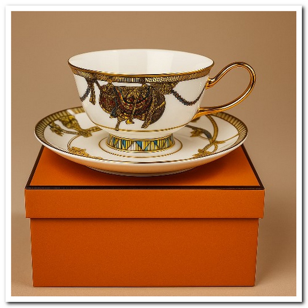 Погрузитесь в атмосферу роскоши с фарфоровой чайной парой, выполненной в узнаваемом стиле Hermès. Яркие цвета, выразительный узор и благородная форма делают её не просто посудой, а декоративным элементом сервировки.