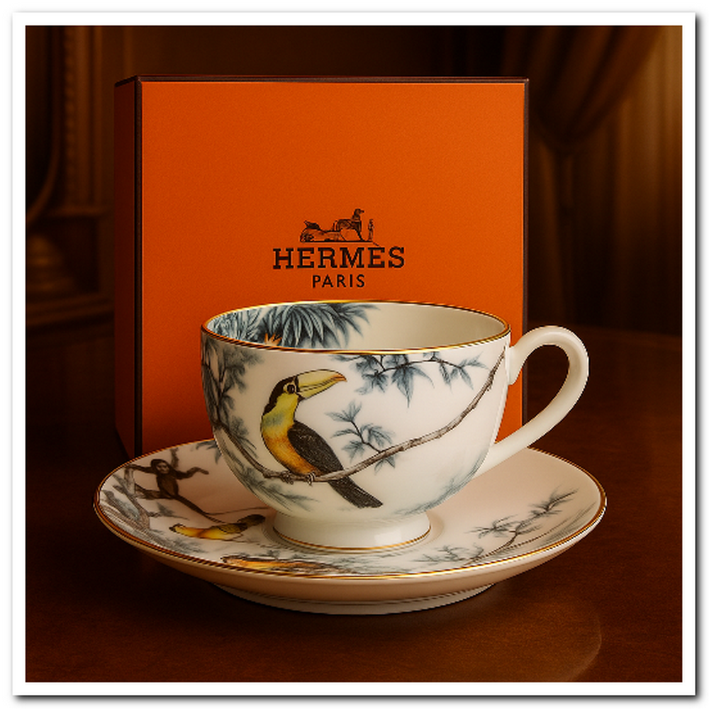 Погрузитесь в атмосферу роскоши с фарфоровой чайной парой, выполненной в узнаваемом стиле Hermès. Яркие цвета, выразительный узор и благородная форма делают её не просто посудой, а декоративным элементом сервировки.
