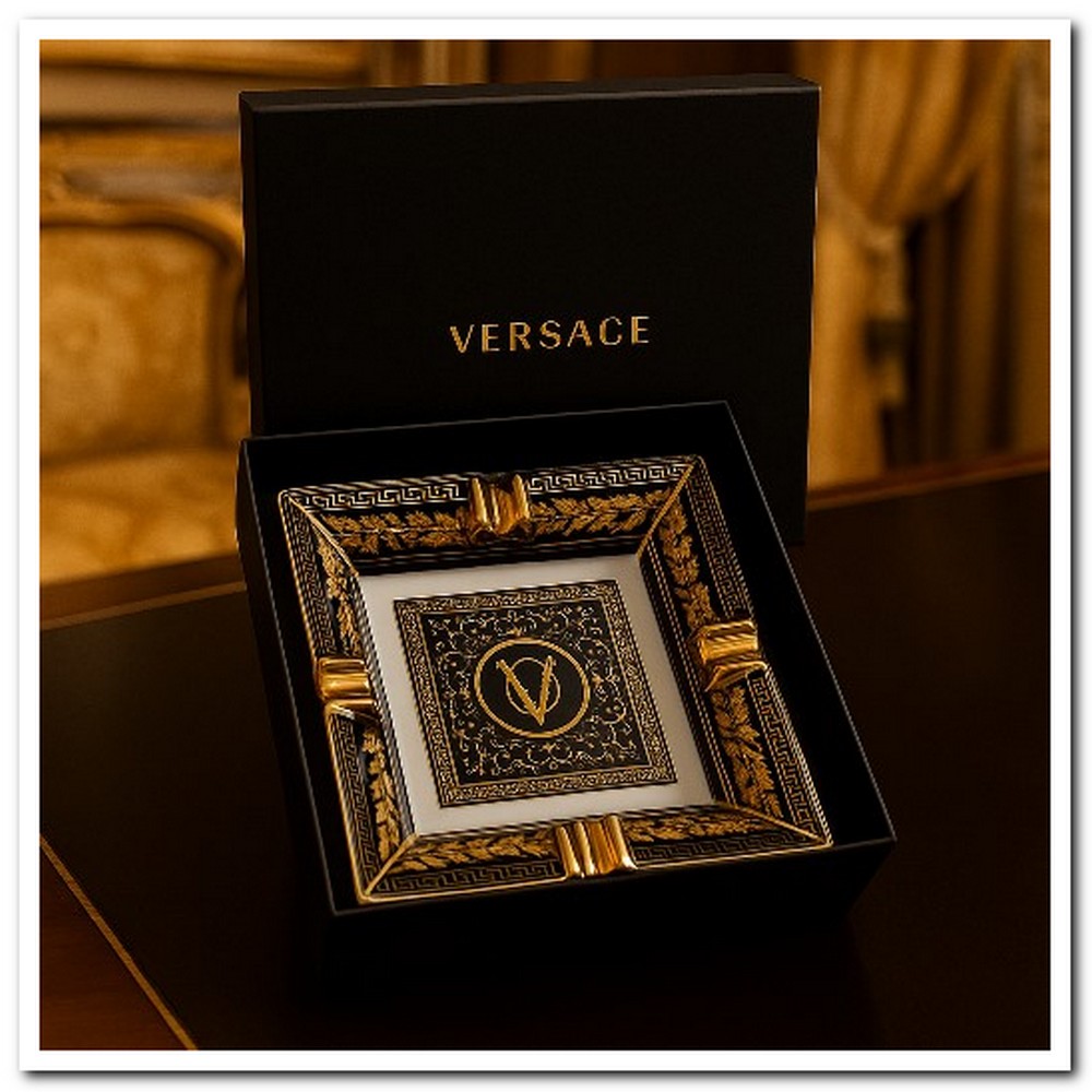 Пепельница Versace фарфоровая 20×20 см в подарочной коробке и коробке