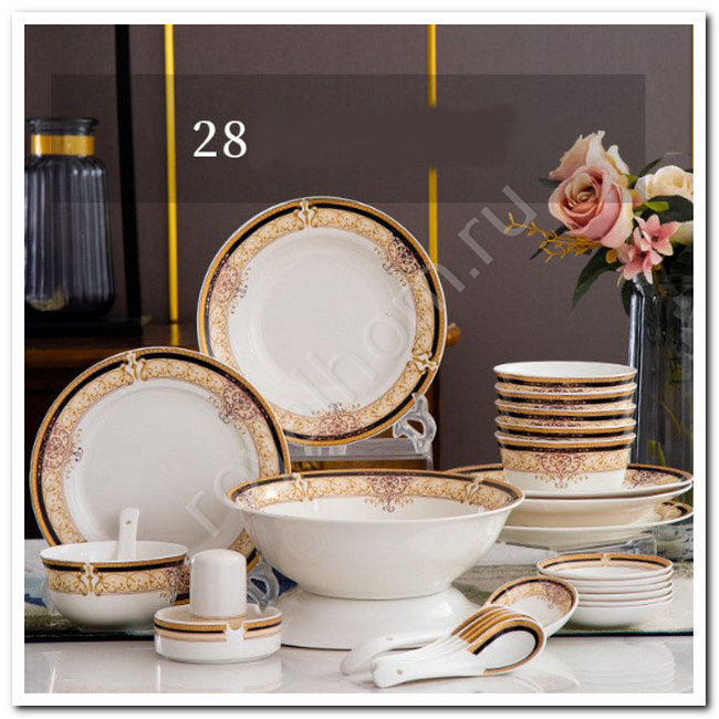 Описание фарфорового столового сервиза из 28 предметов: